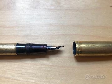 Stilografica come da foto, da ripulire e revisionare. Visibile scritta 18KR sul tappo, ad indicare la laminatura superficiale in oro. A disposizione ulteriori foto su richiesta.