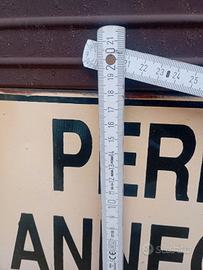Vecchia targa in metallo anni 60/70. PERICOLO DI ANNEGAMENTO. Articolo di rara reperibilità. Per veri appassionati del genere.