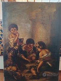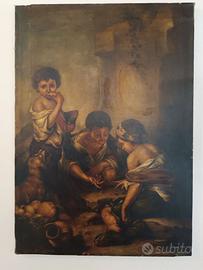 Riproduzione opera su tela cm 75x54 Barocca Spagnola RAGAZZI CHE GIOCANO A DADI di Bartolomè Estaban Murillo 1665 - 1675