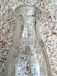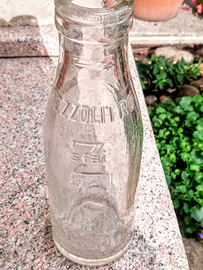 Vecchie bottiglie latte zsfai da 1 lt e da mezzo litro anni 60 . corona dentata x tappo alluminio . fanciulla coronata simbolo italia in rilievo