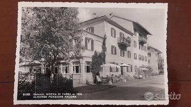 2 vecchie e belle cartoline anni 40 / 50 dell'Albergo Pensione "Ancora" di Moena di Fassa (Dolomiti), in ottime condizioni.