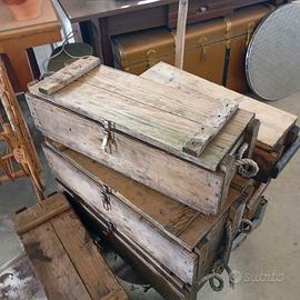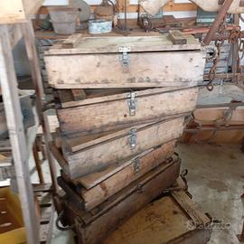 Vecchie casse in legno riutilizzate per ricambi meccanici , ideali per riutilizzo come porta vasi , per arredo locali con veicoli d'epoca ecc. ecc. misure da cm 60 a cm 70x25 € 20,00 e € 30,00 l'una , sconti per acquisti multipli , eventuale spesa di spedizione da € 10,00 a 35 di tutte se ancora disponibili , oppure Visibile a Santa Margherita D'Adige in via A.Volta 451 (PD) a 1 km dal casello autostradale Santa Margherita D'Adige il primo a 8 km dopo Noventa Vicentina direzione Rovigo A31 . Siamo Specializzati in articoli di attività contadina e articoli vintage o industriali per il vostro realizzo costruttivo riciclo . lunedì mattina chiuso , pomeriggio 15:00/19:00 . giorni infrasettimanali 9,00-12,30 15,00-19,00