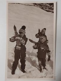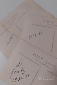 3 vecchie e bellissime foto fotografie "originali" che ritraggono 3 bambini (suppongo 3 fratellini visto l'abbigliamento identico) in tuta e sci sulle piste di St. Moritz, in vacanza per il capodanno 1931/32 !
