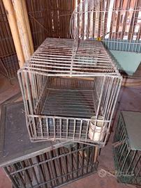 Lotto di 3 vecchie gabbiette per uccellini, da restaurare e ripulire, di piccole dimensioni, le misure sono di circa cm 24 x 20 x 20.