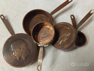 VECCHIE PENTOLE IN RAME MINIATURA MONETE ANTICHE