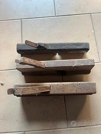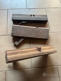 Vecchie pialle in legno su una presenti segni di tarli . Misurano circa 26 cm