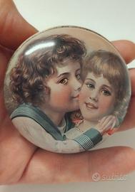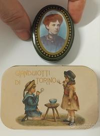 4 belle e vecchie scatole di caramelle in latta con bimbi e una nonna, integre e ben conservate,