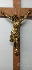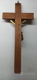 Vecchio crocifisso da parete con Cristo in gesso scolpito montato su una croce originale in legno.