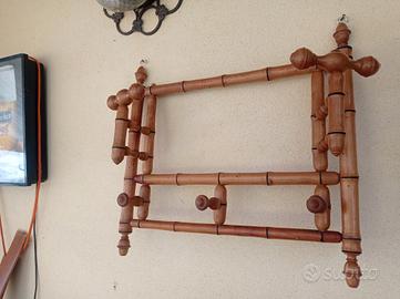 È un piccolo attaccapanni o cappelliera in Bamboo di epoca Liberty. Si chiude e si apre in quanto i rocchelli girano e sono orientabili. Oggetto molto raro, con ganci per appendere a muro. Contatto 347 1540628 Dimensiona cm. 50 x 50