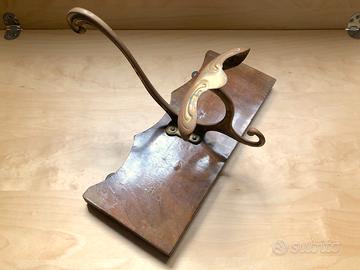 Attaccapanni come da foto. Supporto in legno, spallina probabilmente in ottone.