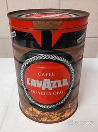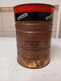 vecchia scatola /barattolo (vuoto) caffè Lavazza qualità oro,fine anni 60, più vecchia della più comune versione che riporta l'immagine della "Carmencita" sul retro. Non ha botte o graffi evidenti, solo gli inevitabili piccoli segni del tempo .