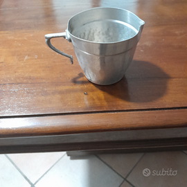 Bric antico delle case rurali, in latta, come in foto, ben conservato. Altezza 10 cm circa, diametro 10 cm. Colore argento latta. Come in foto.