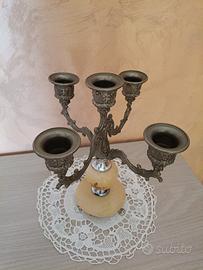 Vecchio candelabro a 5 braccia in onice e peltro vintage. Dimensioni: 22cm altezza x 21cm larghezza. Possibile spedizione.