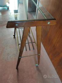 vecchio carrello porta TV anni 50-60 completo di ruote per trasporto televisione da una camera all' Altra. mis.cm.84 alt. x cm.40 prof x cm.75 largo. con vetro integro. tutto originale