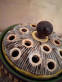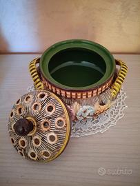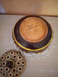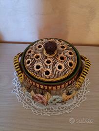 Vecchio centrotavola con coperchio fantasia floreale in ceramica firmato "Fima - Deruta"