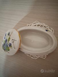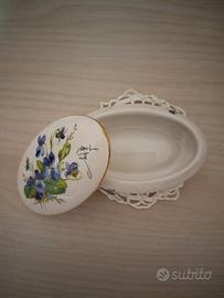 Vecchio cofanetto ovale in porcellana firmato