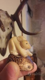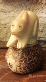 animali del bosco cucciolo miniatura gatto Coniglietto intarsiato in osso corna cervo pet soprammobile taverna mobili casa montagna