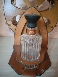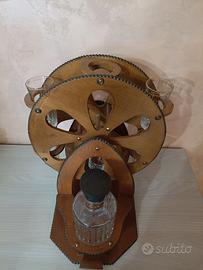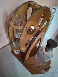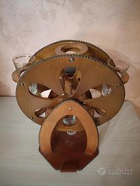 Vecchio decanter porta bicchieri in legno a forma di ruota panoramica vintage anni '60.
