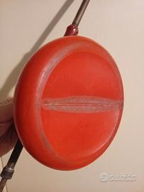 vecchio arnese / attrezzo per nebulizzare, solitamente "insetticidi", DDT, ecc. Insolito il serbatoio in plastica rossa, più grande e capiente rispetto ai soliti nebulizzatori. In buone condizioni .
