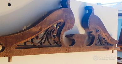 Bel fregio sovra porta in legno di rovere finemente intarsiato a mano inizi 900. Larghezza cm 90 altezza cm23. Consegna a mano a Venezia e provincia o Bologna o spedizione.