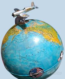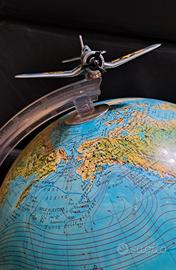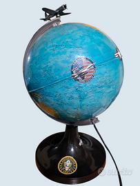 vecchio mappamondo luminoso della RICO Firenze diametro cm 25 circa, scala 1:51.000.000 con aereo in metallo misure lunghezza cm 9 larghezza cm 10