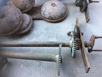 Orologio da campanile marca Bergallo smontato e da ripristinare. Ci sono lancette, enorme pendolo e rinvii per trasmettere il movimento.