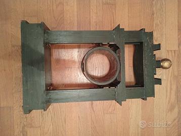 Antica cassa in legno per orologio ,misure ; cm 70 h x41 lx15 p. Il foro per l'orologio misura cm 13\ 13,5. Le colonnine credo siano in alabastro e la cassa è in legno dolce , credo abete o pino.