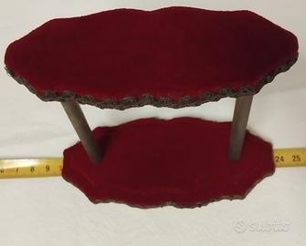 vecchio supporto per orologio da taschino/ cipolla ,da scrivania / comodino, in velluto bordeaux e rifinitura in finto pezzo/trina in filo metallico (ottone brunito), in buone condizioni ( molto buone).