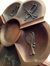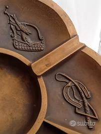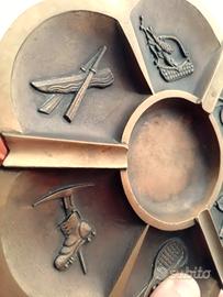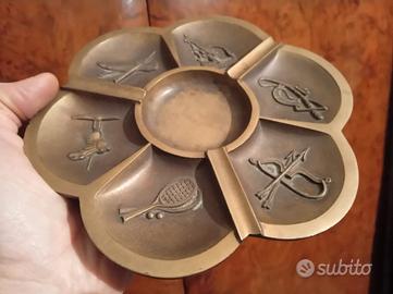 VECCHIO E PESANTE POSACENERE IN OTTONE ANNI 60, DIAMETRO cm.19,2, CON 6 DIVERSI SCOMPARTI DEDICATI ALLO SPORT. (PESCA, TENNIS, ARCO, IPPICA ARRAMPICATA E CANOA), DAVVERO BELLO E MASSICCIO. IN BUONE / OTTIME CONDIZIONI.