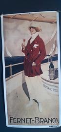 VECCHIO MANIFESTO PUBBLICITARIO. DONNA SU YATCH FERNET BRANCA. SERIE ANNI TRENTA. 80x50. MAI APPESO.