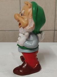 vecchio nano serie "Biancaneve e i 7 nani " in gomma (ancora morbida), compreso di sonaglio "funzionante", marchiato "Walt Disney Productions", con elefantino Ledra Plastic. Buone condizioni