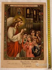 2 vecchi cartoncini "ricordo della Prima Comunione",fine ventennio fascista, uno del 1943 e l'altro del 1944. C'è un piccolo strappo di circa un centimetro in fondo a quella del '44 (tra il 2 ed il 4) e una rottura in alto a destra (pezzo mancante) nell'altra (vedi ultima foto), per il resto sono in buonissime condizioni.