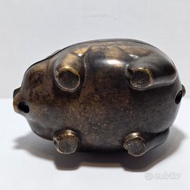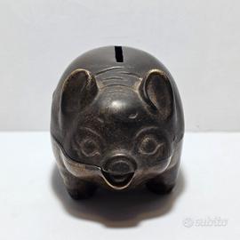 Vecchio salvadanaio a forma di maialino in bronzo. Presenta due viti per porterlo aprire.