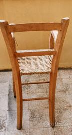 In legno con seduta impagliata e chiusura di sicurezza anteriore.