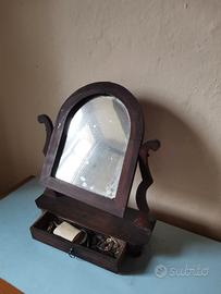 Vecchio specchio da tavolo primi anni '900 con cassettino portagioie Dimensioni Larghezza 37cm Altezza 45cm