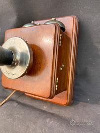 Particolare telefono in legno da muro Kellogg originale americano 1900 circa completo