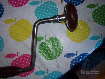 VECCHIO TRAPANO A MANOVELLA GIRABACCHINO, IMPUGNATURA IN LEGNO, FUNZIONANTE