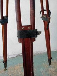 Vecchio treppiede per rilievi in legno, lunghezza gamba, chiusa cm. 100; estesa cm.160. Cinghia in cuoio per fermo spezzata. Marca Salmoiraghi (senza etichetta). Da restaurare. Importo di spedizione indicativo, da ricalcolare in base a: peso, dimensioni, destinazione.