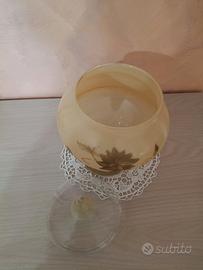 Vecchio vaso con coperchio in vetro soffiato colore panna con decorazioni a mano.