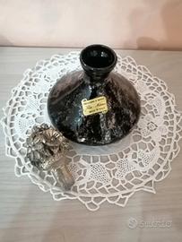 Vecchio vaso in vetro Murano con tappo in metallo.