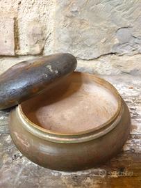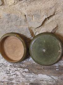 Vecchio vintage portacipria in legno Altezza cm 6 Diametro cm 14 Visibile sia a Perugia che a Siena