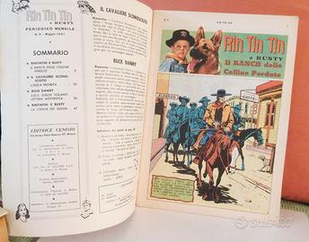 Rin Tin Tin, il pastore tedesco beniamino dei bambini che alla fine degli anni 50 seguivano alle 17 le sue avventure assieme a Rusty il ragazzino con la divisa dei soldati dell'unione, è indimenticabile per chi ha vissuto quegli anni così belli. Il periodico riproponeva le avventure televisive assieme ad altre storie. In questo numero vediamo i nostri due eroi coinvolti nel ranch delle colline perdute e di seguito la prima puntata dell'avventura magistralmente disegnata con protagonista il Cavaliere Sconosciuto. Dopo l'isola proibita, una storia del leggendario pilota da caccia dell'aeronautica USA Buck Danny disegnato da Victor Hubinon e un'ultima avventura di Rin Tin Tin nella chiave dei sogni. Nell'ultima di copertina una brevissima short story con Fido il simpatico cagnetto personaggio dei comics di Tom &Jerry. *Spedizione in cartoncino.