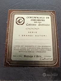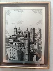 incisione su lastra d'argento 925 - Skyline di Città Alta, Bergamo vista dalla Rocca, datata 1991
