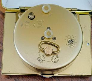 Veglia sveglia da viaggio vintage, chiudibile in ottone e doratura,made in Germany, seminuova, fondo di magazzino, oerfettamente funzionante