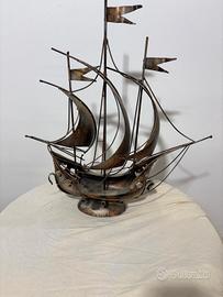 Veliero in ferro battuto bronzato fatto a mano. Misure di massima: Altezza 62cm circa. Lunghezza 55cm circa.