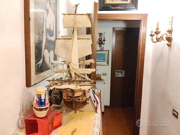 Vendo splendida riproduzione artigianale in legno della celebre nave HMS Bounty. Il modello è caratterizzato da un'elevata cura dei dettagli, con sartiame complesso e scafo interamente rivestito in listelli di legno.