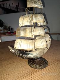vendo Veliero in corno di bue, anni 60, d'epoca, 3 alberi, lunghezza cm 33, altezza cm 37, base in ottone. Molto particolare