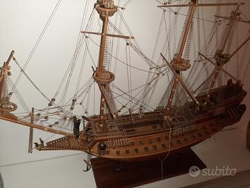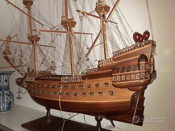 IDEA REGALO X ARREDAMENTO BELLISSIMO veliero in legno realizzato a mano (non in scatola di montaggio) completo di cannoni e finiture in ottone ideale per mostre o arredare locale misure lunghezza cm 110 altezza cm 110 con basamento larghezza cm 28 vendesi euro 800 visibile e ritirabile prov. Bologna non spedisco per ulteriori info tel 3387789693