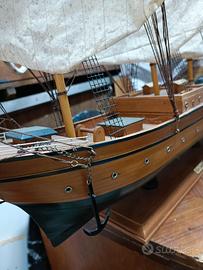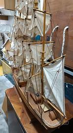 Quattro alberi con basamento , lunghezza scafo 85 cm , siglato gio Cellini , altezza totale dal basamento uguale 94 cm , lunghezza totale compreso di alberi uguale 108 cm.