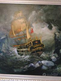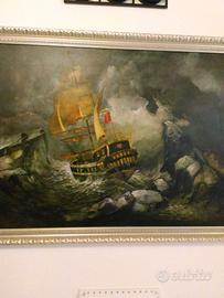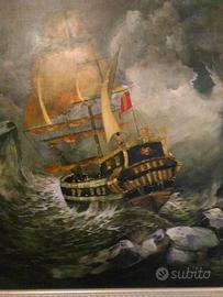 Quadro olio su tela veliero in tempesta misure cm 137 x 106